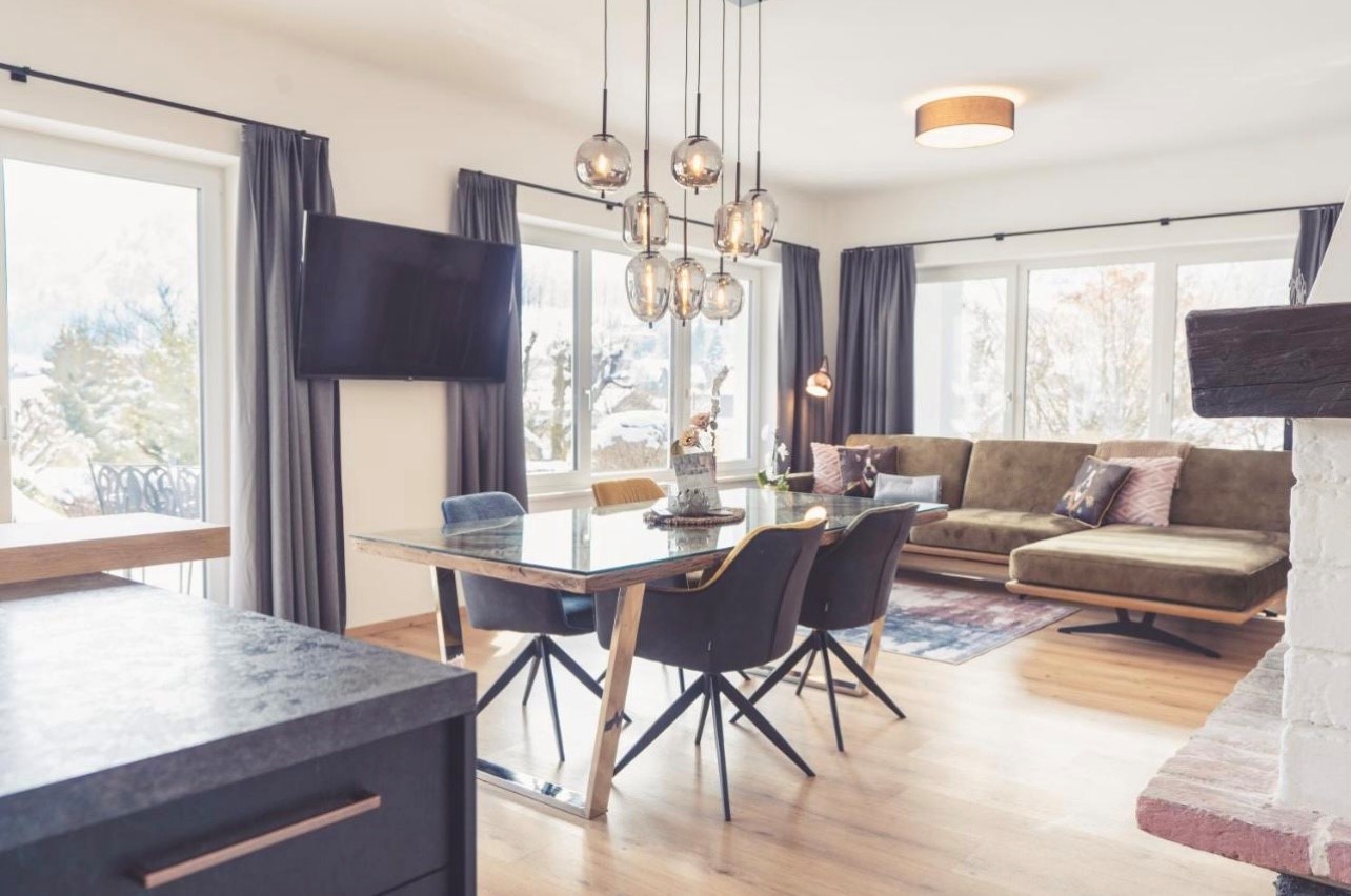 Alle Apartments verfügen über Berg- und Seeblick, vollausgestattete Küche mit Kaffee- und Wasserkocher, Schlafzimmer mit Doppelbett, Wohnküche mit Schlafcouch, sowie Bad, ebenerdige Dusche und WC.