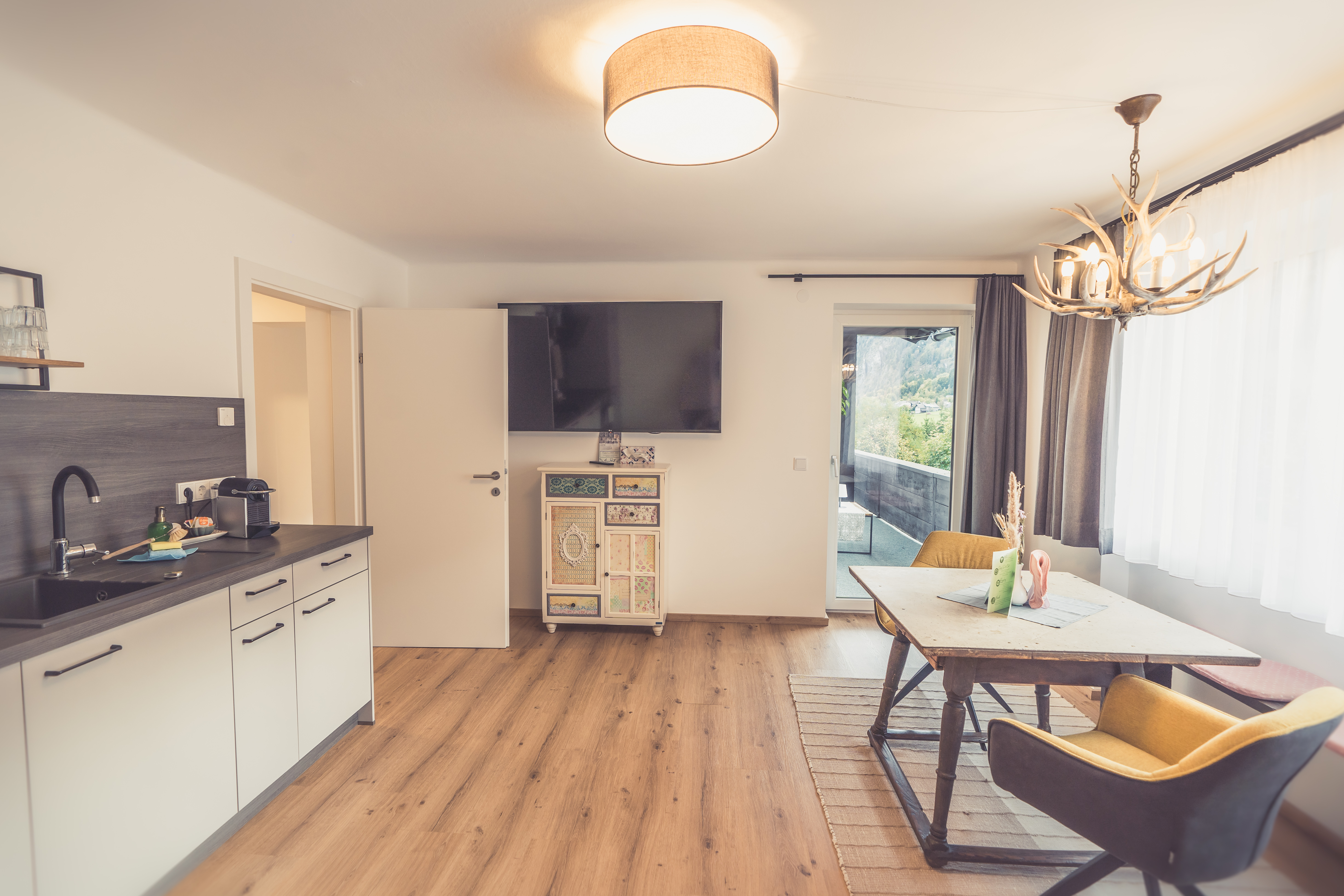 Alle Apartments verfügen über Berg- und Seeblick, vollausgestattete Küche mit Kaffee- und Wasserkocher, Schlafzimmer mit Doppelbett, Wohnküche mit Schlafcouch, sowie Bad, ebenerdige Dusche und WC.