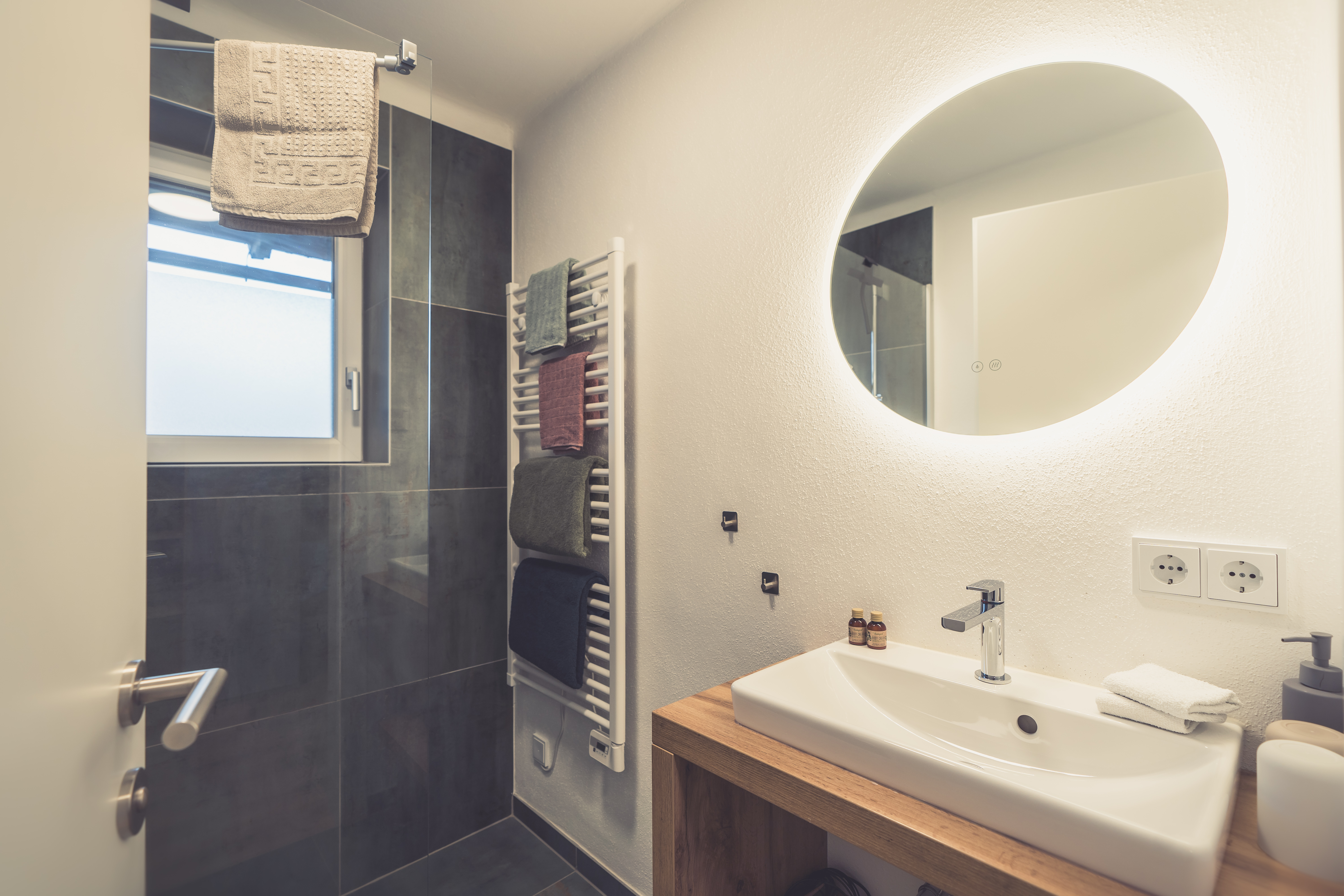 Alle Doppelzimmer verfügen über Berg- und Seeblick, Kaffee- und Wasserkocher, Doppelbett, sowie Bad, ebenerdige Dusche und WC.